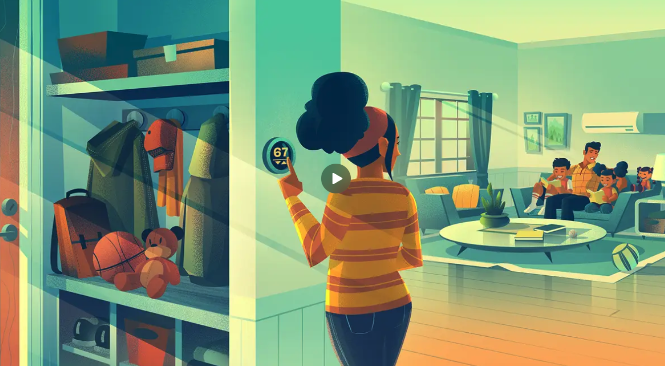 The animated PSA follows two main subjects, the Airflow that heats or cools the house and the Family that lives in it.